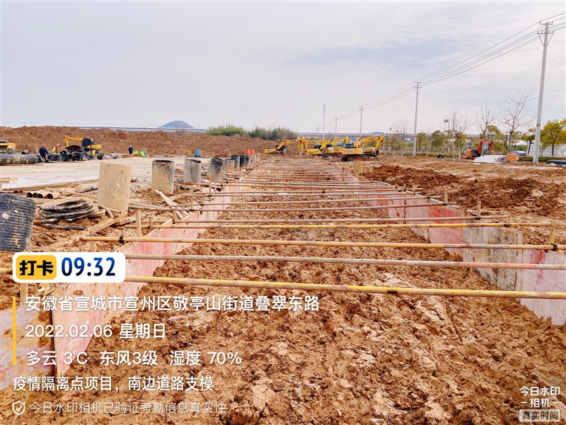 施工現(xiàn)場機械轟鳴、人聲鼎沸,現(xiàn)場10余臺機械設(shè)備滿負(fù)荷運轉(zhuǎn),100多名工人和管理人員加班加點進(jìn)行作業(yè),他們的春節(jié)假期在緊張和忙碌中度過,遇到困難千方百計的想辦法解決,并且在“搶”的過程中不斷地創(chuàng)造新的工作方式方法。經(jīng)過堅持不懈的努力,準(zhǔn)備區(qū)188套折疊房一層已安裝完成、二層緊張施工中,現(xiàn)場道路鋼板基本鋪設(shè)完成,折疊房室內(nèi)水電安裝、南邊綠化工程、室外強電工程、室外污雨水管道修補、室外路燈、室外部分道路也在同步施工,為下一步緩沖區(qū)的板房安裝及隔離區(qū)的打包房安裝做好充足的準(zhǔn)備工作。