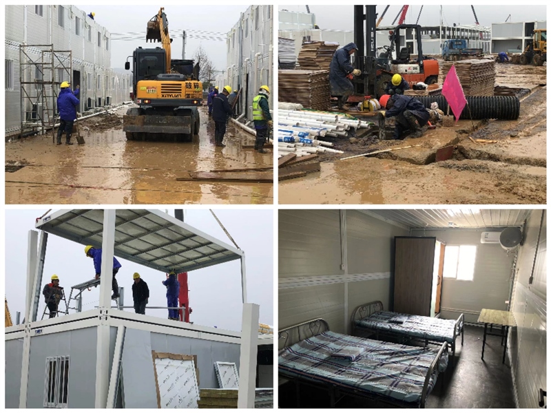 截至2月11日,隔離點(diǎn)項(xiàng)目準(zhǔn)備區(qū)折疊房安裝完成,折疊房室內(nèi)家具、空調(diào)、熱水器、淋浴房、水電正在有序安裝中;隔離區(qū)板房室外電力電纜井砌筑、緩沖區(qū)板房已安裝完成;污水處理設(shè)備正在安裝中,室外走道支模和路燈線(xiàn)路在準(zhǔn)備中。
