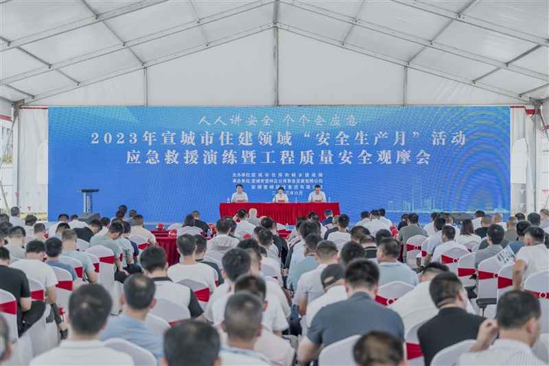 2023年6月28日,宣城市住建領(lǐng)域“安全生產(chǎn)月”活動應(yīng)急救援演練暨工程質(zhì)量安全觀摩會在我司高級技工學(xué)校建設(shè)項(xiàng)目成功舉行。市住建局主要負(fù)責(zé)人親臨指導(dǎo),全市各縣(市、區(qū))住建局、市質(zhì)監(jiān)站、宣城經(jīng)開區(qū)管委會、宣城現(xiàn)代服務(wù)業(yè)產(chǎn)業(yè)園區(qū)管委會市住建局下屬相關(guān)單位及全市各縣 (市、區(qū))部分建設(shè)、施工、監(jiān)理企業(yè)主要負(fù)責(zé)人、項(xiàng)目負(fù)責(zé)人共 300 余人參加觀摩活動。