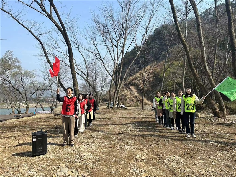 溪口的春日,山青水碧、空氣清新,晨風中掠過的一絲微涼瞬間點燃了“女神”們滾燙的運動熱情!芭瘛眰冊诮坦俚闹敢,通過“極限60秒”、“驛站傳書”等互動游戲,在一片歡聲笑語中感受著春日的氣息和蓬勃向上的生機與活力。