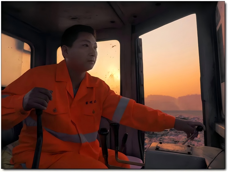 徐開鋒臨危受命,在填埋場當推土機駕駛員。每天的工作就是把400多噸的垃圾推平壓實。每到夏、秋季節(jié),臭氣熏天的垃圾引來更多的蒼蠅“光顧”,用徐開鋒同事的話說,“遠看徐開鋒就好像穿了一副‘將軍鎧甲',蒼蠅扒在他的臉上、手上、背上……”彼時的徐開鋒已經(jīng)是一名7歲女孩的父親,但為了應(yīng)對繁重的工作,他每天5點鐘就騎著摩托車出了門,等到晚上回家時,女兒多半已經(jīng)睡著了。“領(lǐng)導把我安排到這個崗位,我就要崗位上做出個樣!”,正是胸懷這份“執(zhí)拗”,他在填埋場推土機駕駛員崗位上堅持了11年。